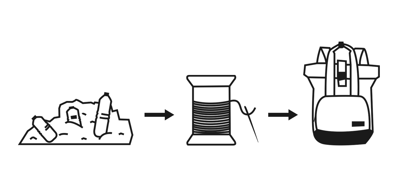 For our Creator's Collection and our Conversion backpacks, we use recycled PET made from plastic bottles.