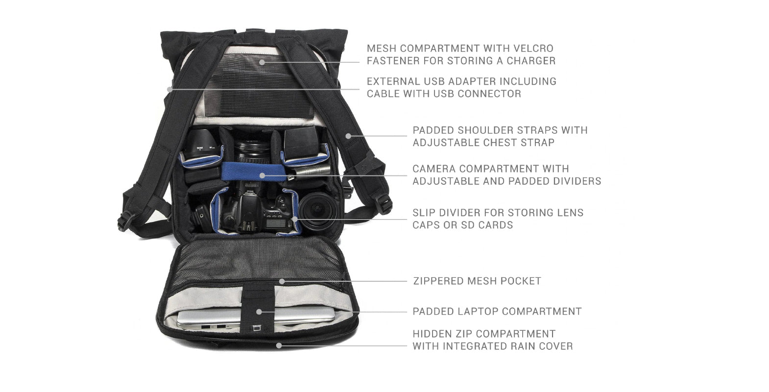 - Camera compartment: 29.0 x 22.0 x 14.0 cm