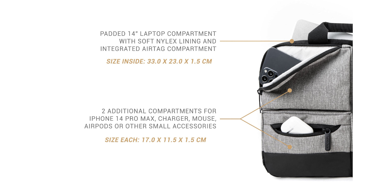 - Laptop compartment: 31.3 x 22.2 x 1.6 cm