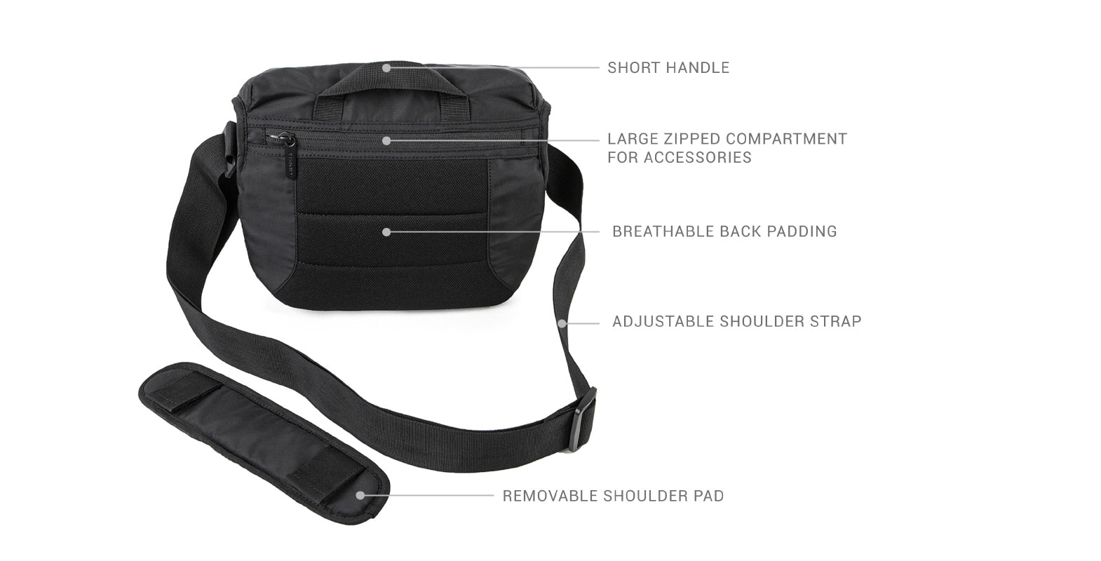 - Shoulder strap: 86 - 166 cm