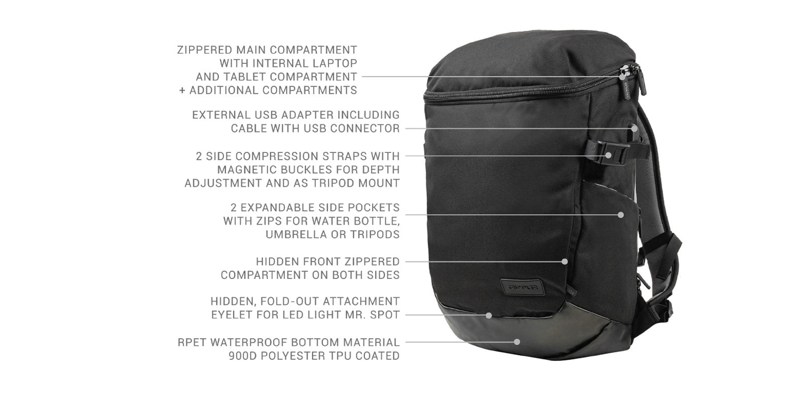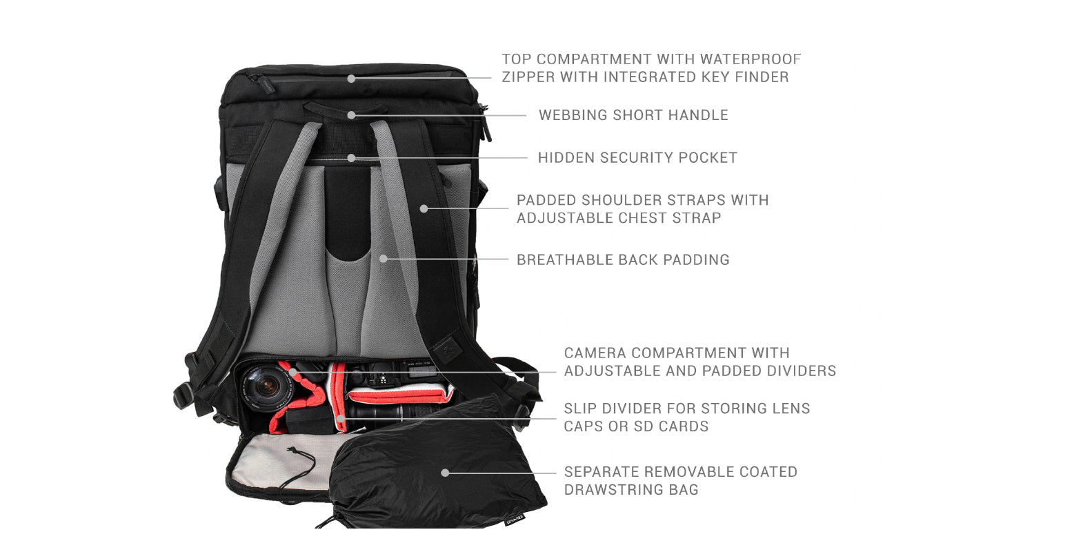 - Camera compartment: 31.0 x 17.0 x 16.0 cm
